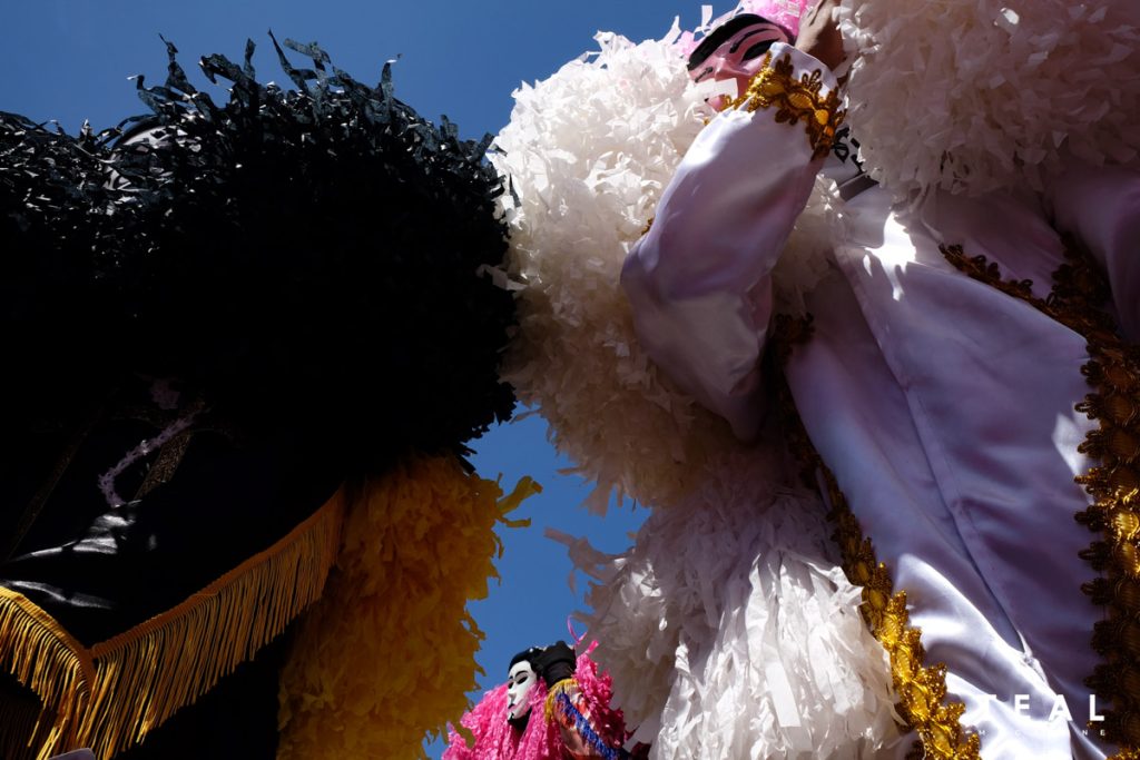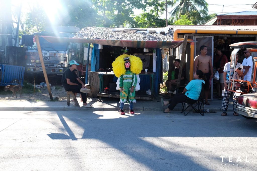 They can be easily recognized—they wear huge headgear or turbante, made from colorful crepe paper. They don it with a mask and a matching tunic. Pilgrims and visitors would find them at the General Luna Plaza for the “Estokadahan ng mga Senturyon,” or a mock sword fight, or in the streets, walking under the scorching heat of the sun all day. They can also be seen at the General Luna Port waiting for the sunset.